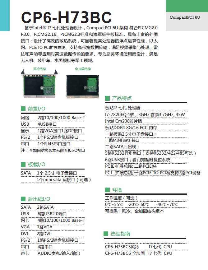 基于Intel® I7 七代处理器设计,,,,CompactPCI 6U 架构 符合PICMG2.0