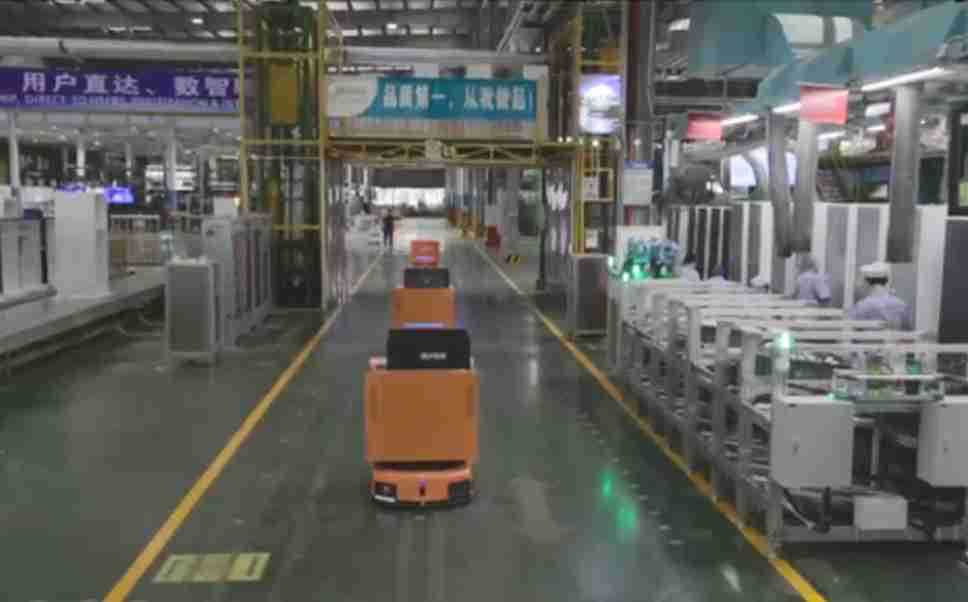 为车载冰箱物流配送打造的智能解决方案,,,包含产中物流通过潜伏举升AMR搬运至线边,,,产后成品物流智能仓储,,流程包含产中物流智能齐套入库,,线边安灯叫料AMR智能配送至线边,,成品入库、、出库,,通过无人堆高车机器人,,,智能仓储管理替代人工作业管理,,实现更高存储、、更高效率、、、更具柔性化的解决方案。。