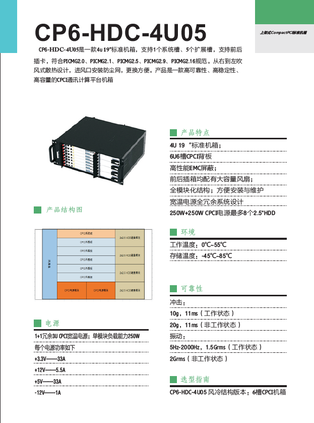 PICMG2.5、、、、PICMG2.9、、PICMG2.16规范。。。从右到左吹风式散热设计,,进风口安装防尘网,,,更换方便。。产品是一款高可靠性