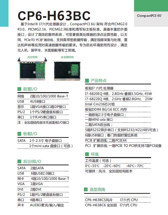 基于Intel® I7六代处理器设计,,,,CompactPCI 6U 架构 符合PICMG2.0