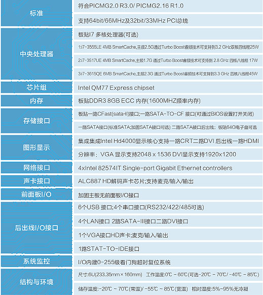 CP6-H9BC6是一款基于Intel Core QM77芯片组架构刀片compact pci板; 板贴Intel Core i7多核处理器;板贴8GB(DDR3 1600)ECC内存; 该产品具备优越的数据处理能力、、、、图形显示能力、、、网络通讯能力,,适用于对实时数据处...