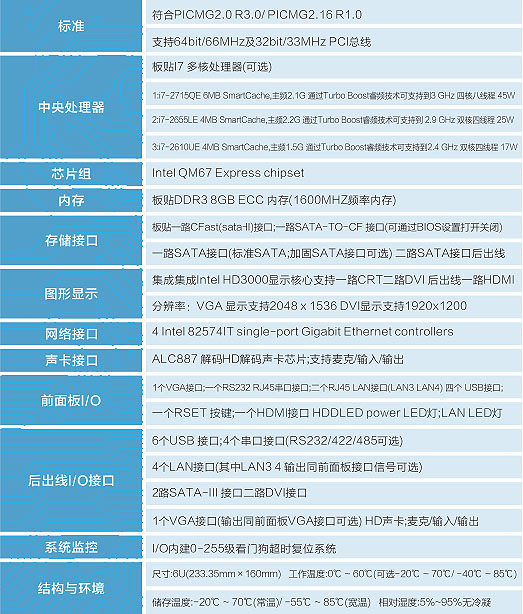 CP6-H9BC5是一款基于Intel Core QM77芯片组架构刀片CPCI板; 板贴Intel Core i7多核处理器;板贴8GB(DDR3 1600)ECC内存; 该产品具备优越的数据处理能力、、、、图形显示能力、、、、网络通讯能力,,适用于对实时数据处理、、、通讯...